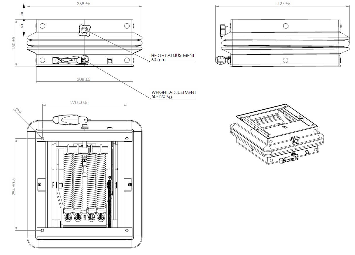 - Continuous adjustment of driver’s weight: 50 – 120 Kg.